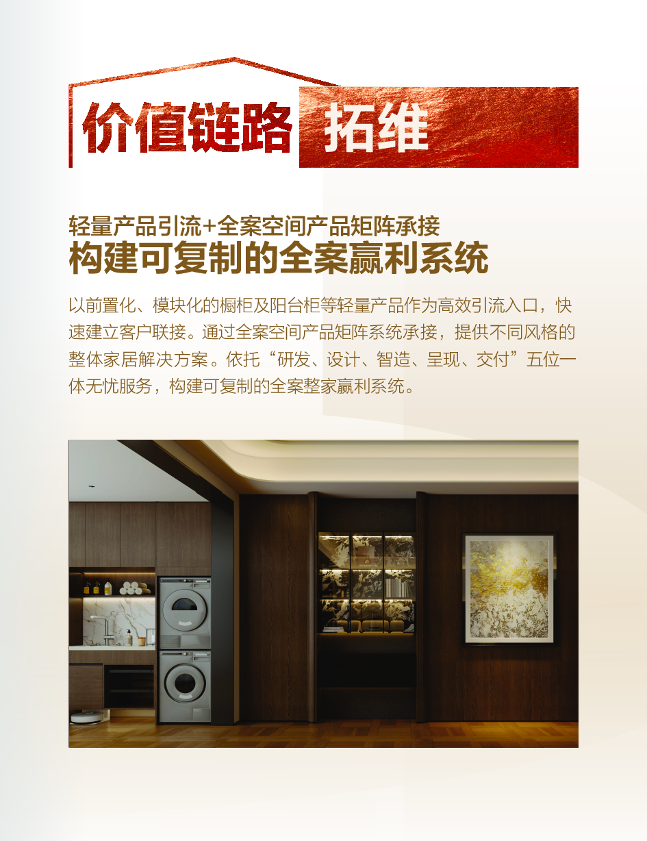 3、独特模式:一体化全案5D定制商业模式,提供研发、设计、智造、呈现、交付,5位一体无忧服务,全屋家居购物,一站全案交付式经营。以AI大模型加持全案生活空间定制,让智慧空间更懂生活美学,打造差异化一站式智慧家居空间解决方案。